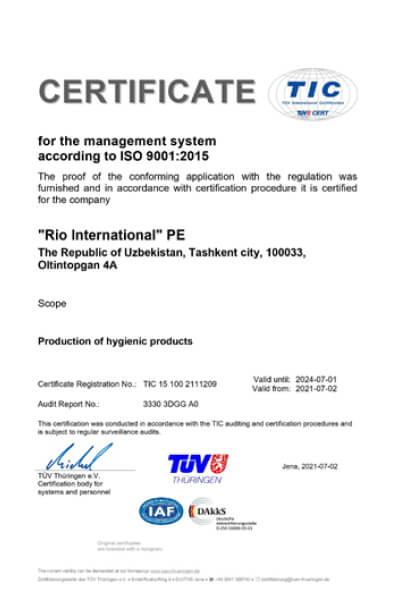На фоне стремительного спроса на наши влажные салфетки под торговыми марками Sunlight, Natural Fresh и Rio, и появившимися новыми возможностями в результате плодотворной работы нашей группы предприятий Sunlight Group, мы первыми в Узбекистане и во всей Центральной Азии в 2021 году установили оборудование для локального производства высококачественного нетканого полотна (spunlace), плотностью от 35 до 65 гр/кв.м., с ежемесячным производственным выходом до 300 тонн сырья.